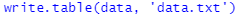 - (예) write.table(data, 'data.txt') / 여기서 data는 R studio 안에서의 객체명