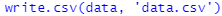 - (예) write.csv(data, 'data.csv') / 여기서 data는 R studio 안에서의 객체명, 기본 저장공간은 설정된 디렉토리임