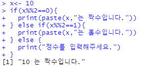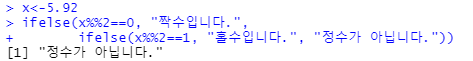 ifelse(x%%2==0, "짝수입니다.",
