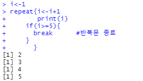 [R] 제어문 2. 반복문 while, for, repeat 함수 본문
